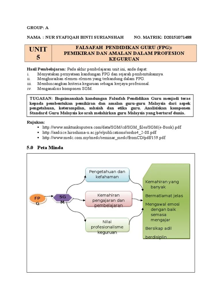 Unit 5 falsafah pendidikan guru:pemikiran dan amalan dalam profesion keguruan kpf 3012: