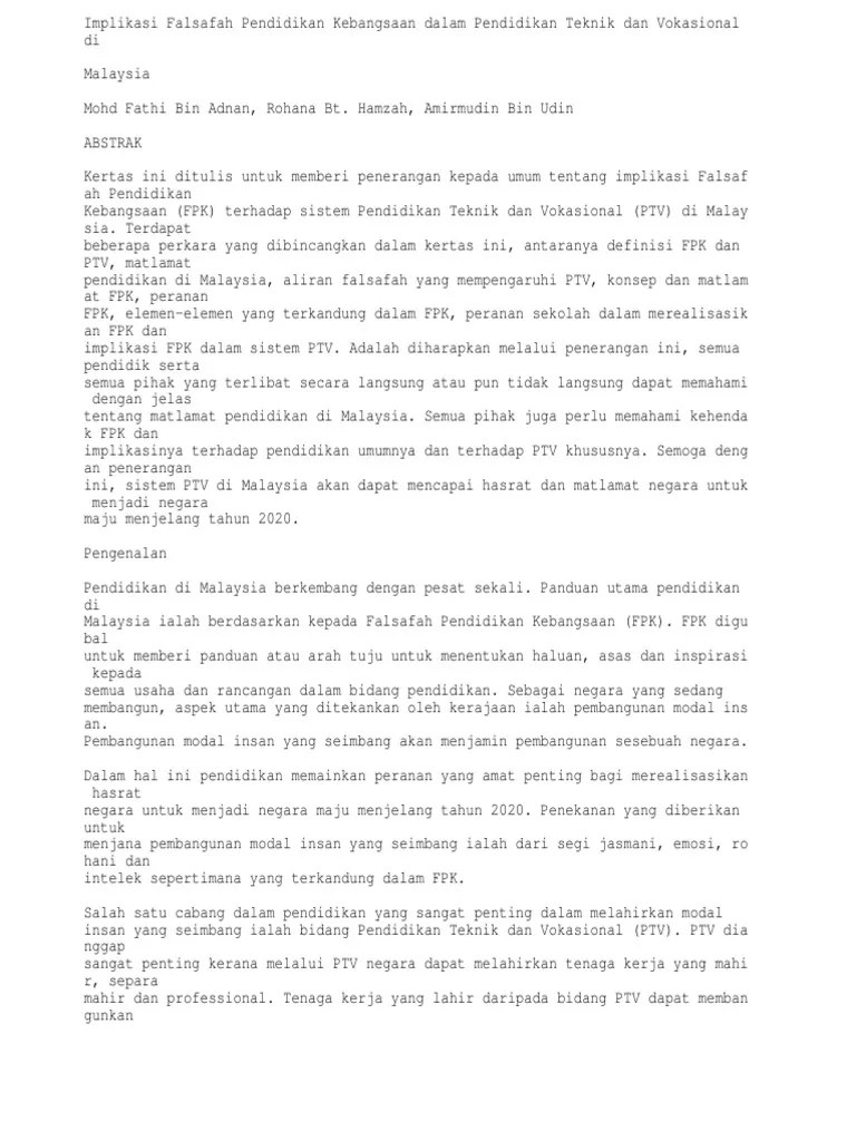 Ppfpm ditubuh bagi mengendali dan melatih pelajar malaysia untuk dihantar bertanding ke. Falsafah pendidikan yang menjadi panduan bagi semua aktiviti pendidikan di malaysia dikenali sebagai falsafah pendidikan kebangsaan (fpk). Falsafah pendidikan kebangsaan, matlamat dan misi. Pemikiran dan amalan profesion keguruan. Merupakan suatu pembentukan kemampuan dasar yang fundamental yang menyangkut daya pikir maupun daya perasaan menuju tabiat manusia (dewey dalam jalaluddin & idi, 2015 tercipta kurikulum pendidikan vokasi untuk menyelenggarakan pendidikan keterampilan.
