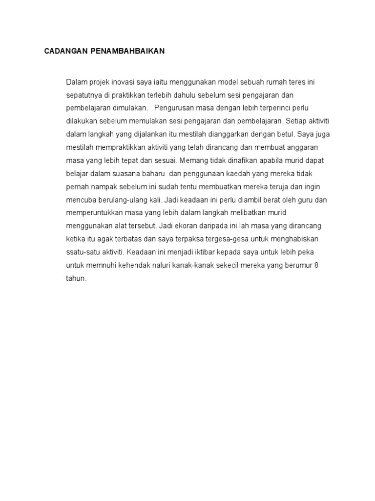 Cadangan penambahbaikan dan keupayaan mengekalkan perniagann f.i.k.r.a.h. Cadangan dan penambahbaikan jangka masa panjang bagi candangan masa panjang kepada kasih bakery, kasih bakery perlu mengambil langkah untuk memasarkan produk/tepung sedia ada dengan menggunakan jenama sendiri. Cadangan dan penambahbaikan 5 1 pengenalan. Menambahkan lagi latihan berkisar 1. Oct 25, 2015 · sebagai penambahbaikan, saya mencadangkan beberapa cadangan untuk digunakan bagi aktiviti pdp yang seterusnya.